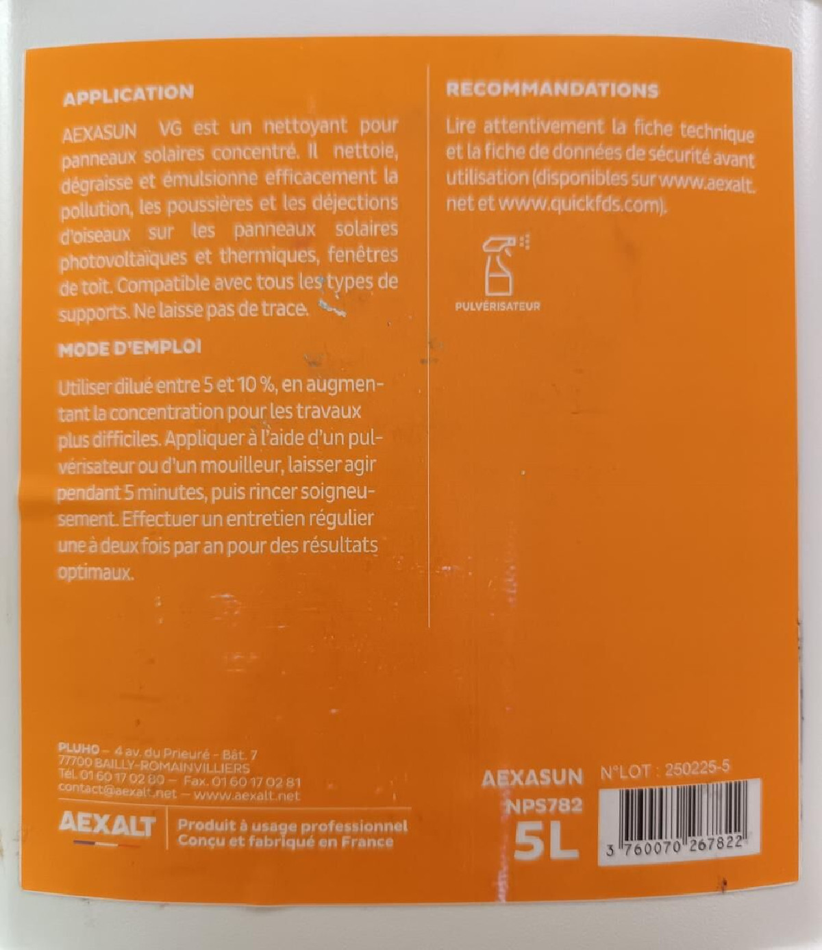 Nettoyant pour panneaux solaire AEXASUN bidon 5 litres